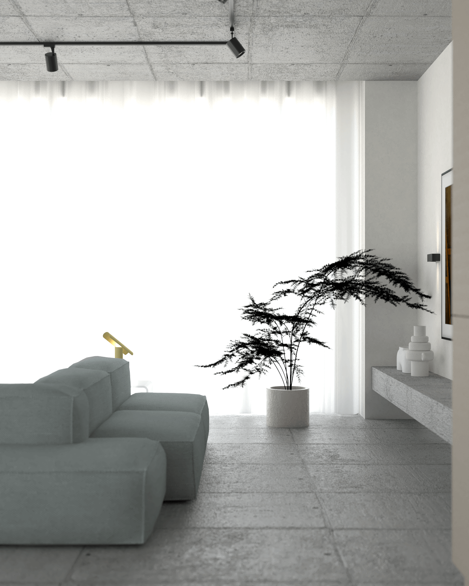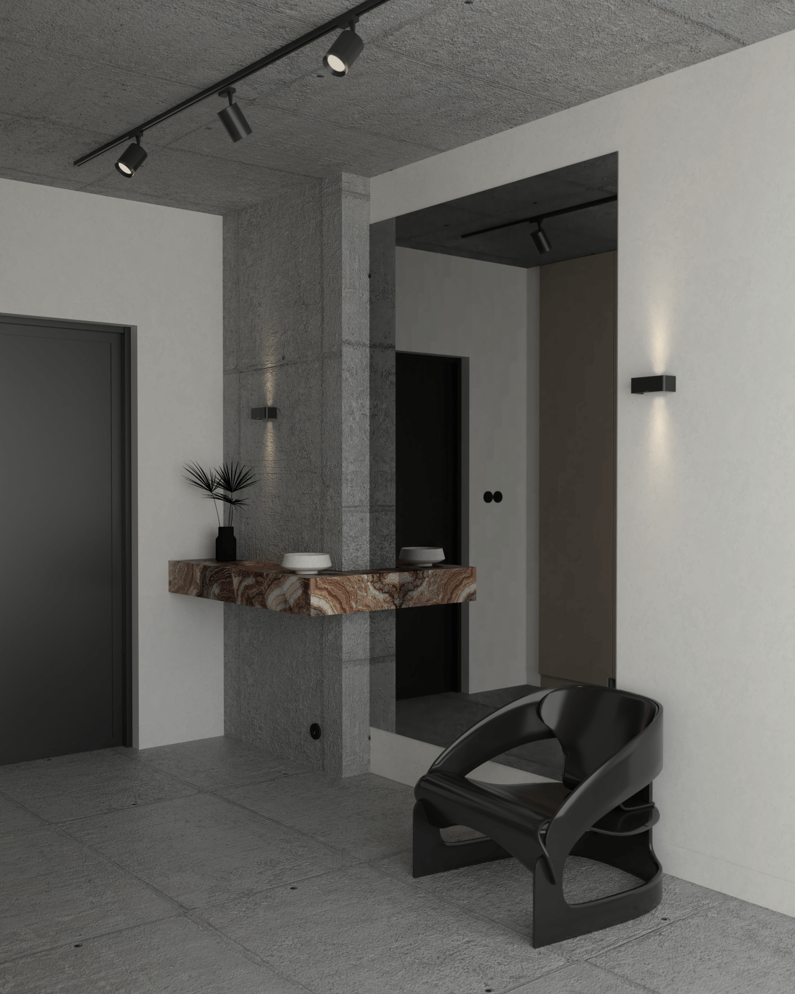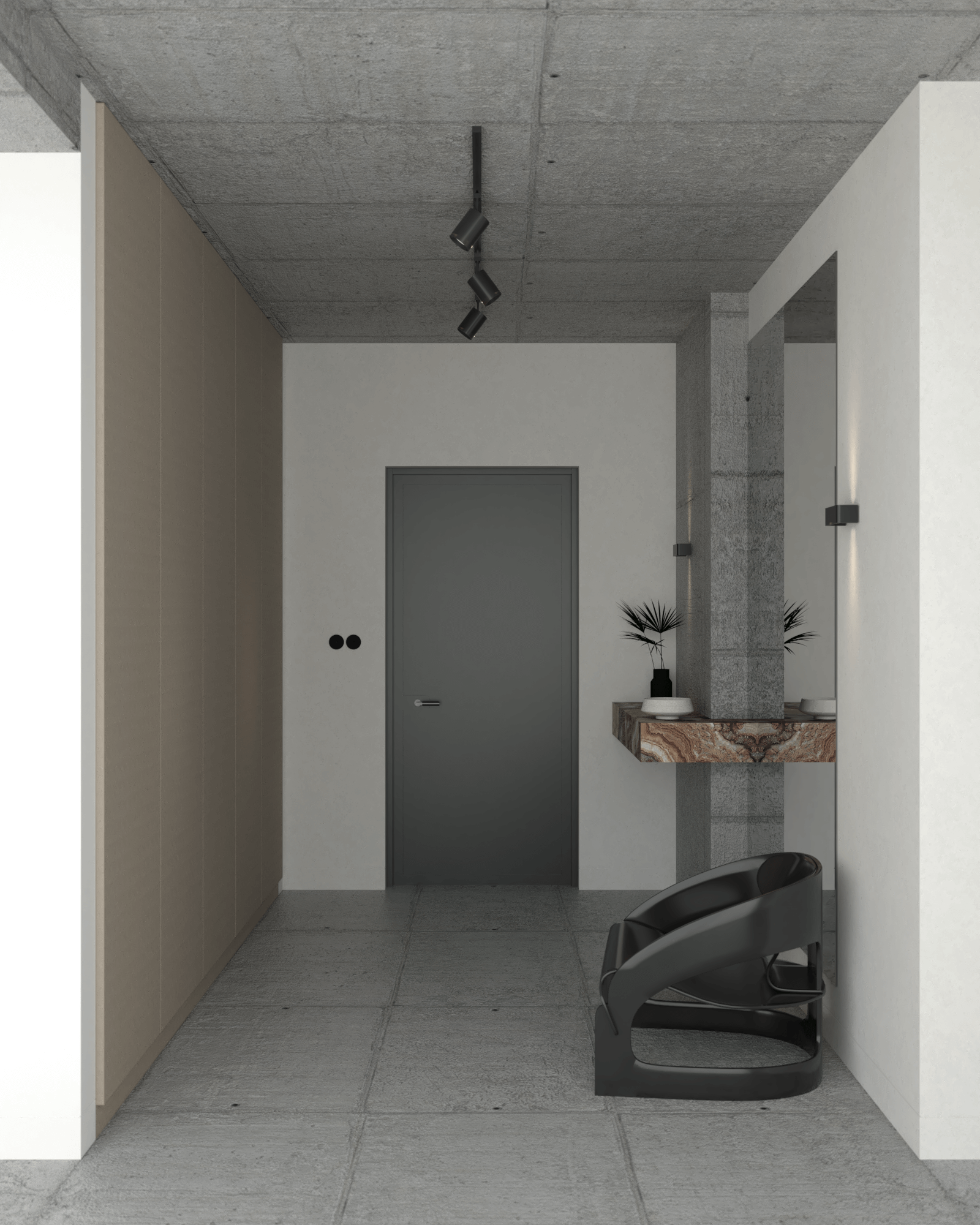 Projekt został przygotowany w celach konkursowych. Konkursy są wyjątkową okazją dla projektanta wnętrz, ponieważ możliwości estetyczne i funkcjonalne są praktycznie nieograniczone, co daje miejsce na kreatywne podejście i twórczą swobodę. Przedstawiam wizualizacje mieszkania wykończonego betonem, inspirowanego stylem brutalistycznym – surowego, lecz pełnego ciepła dzięki subtelnym akcentom. Może ktoś z Was marzy o takim właśnie wnętrzu?